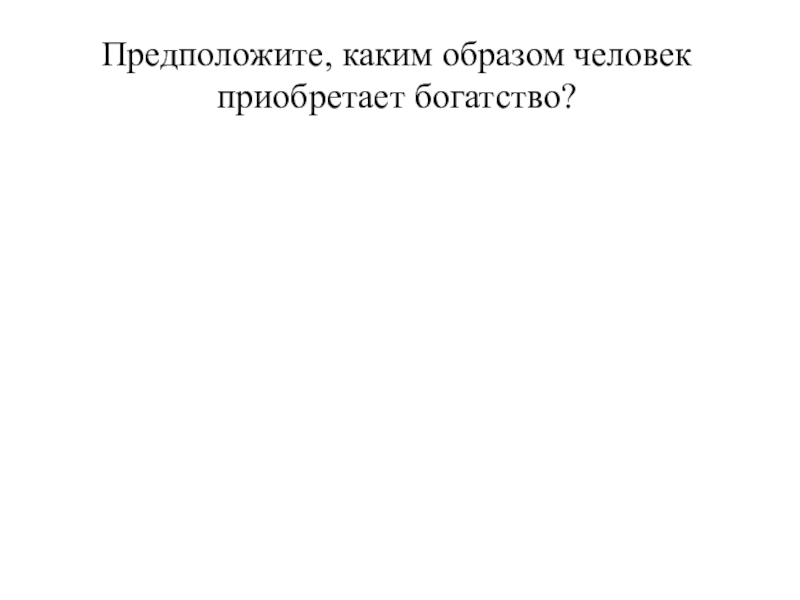 Слайд 27Предположите, каким образом человек приобретает богатство?