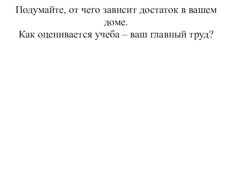 Подумайте, от чего зависит достаток в вашем доме. Как оценивается учеба – ваш главный труд?