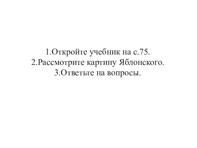 1.Откройте учебник на с.75.  2.Рассмотрите картину Яблонского.  3.Ответьте на вопросы.