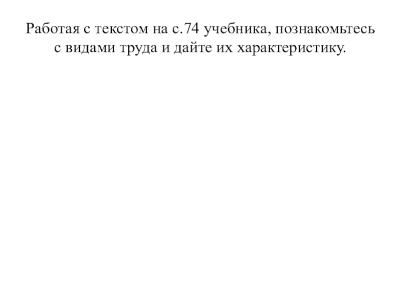 Работая с текстом на с.74 учебника, познакомьтесь с видами труда и дайте их характеристику.
