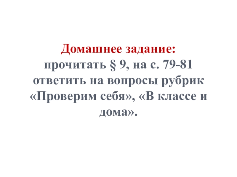 Слайд 1Домашнее задание: прочитать § 9, на с. 79-81 ответить на вопросы рубрик