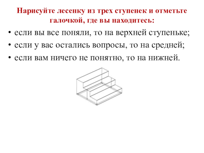 Слайд 37Нарисуйте лесенку из трех ступенек и отметьте галочкой, где вы находитесь: