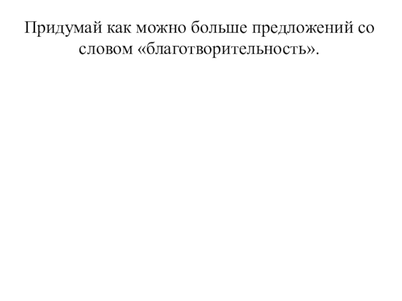 Слайд 31Придумай как можно больше предложений со словом «благотворительность».
