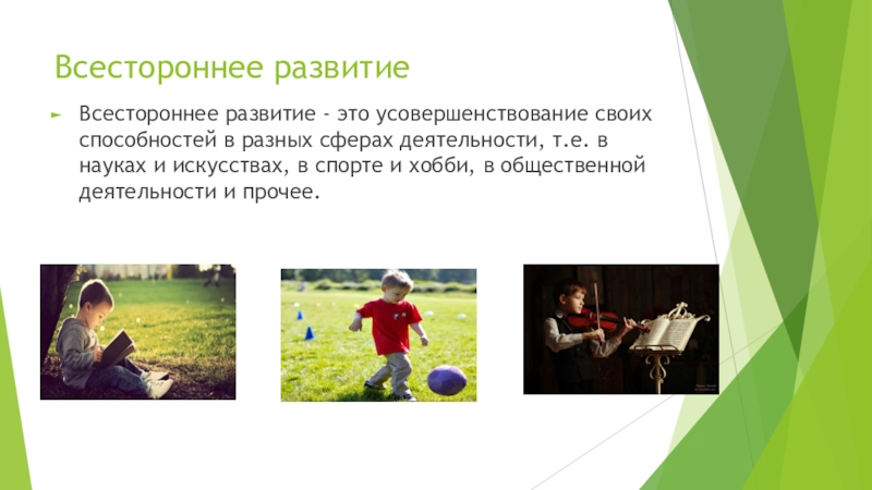 Всестороннее развитие - это усовершенствование своих способностей в разных сферах