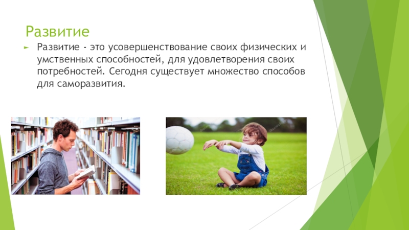 Развитие - это усовершенствование своих физических и умственных способностей, для удовлетворения