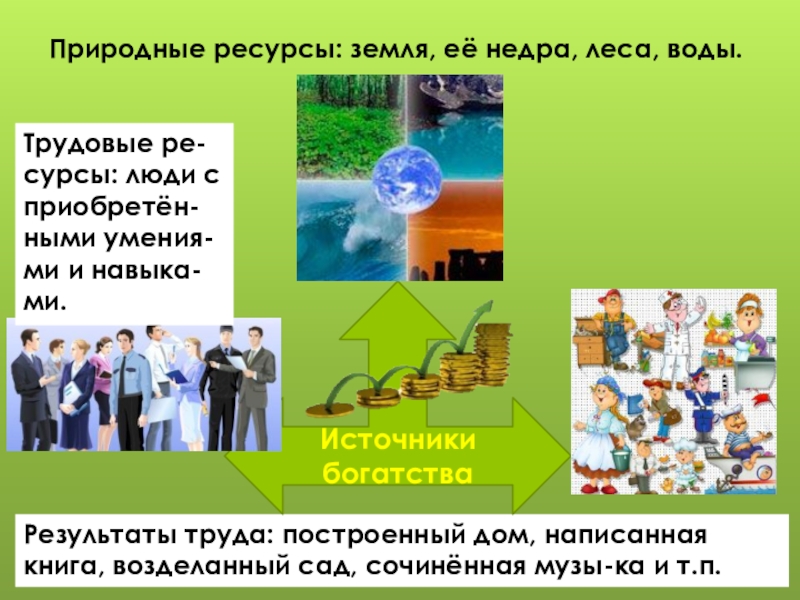 Природные ресурсы: земля, её недра, леса, воды.