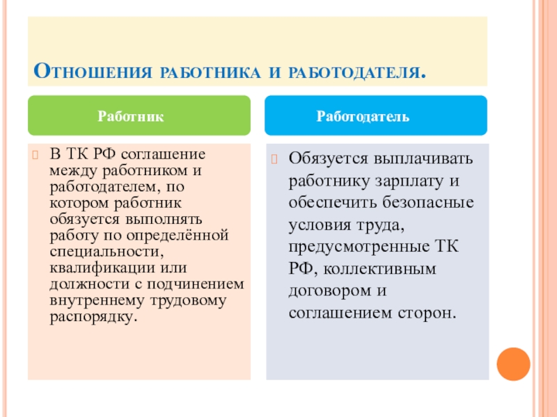 Обязуется выплачивать работнику зарплату и обеспечить безопасные условия труда, предусмотренные ТК РФ, коллективным договором и соглашением сторон.