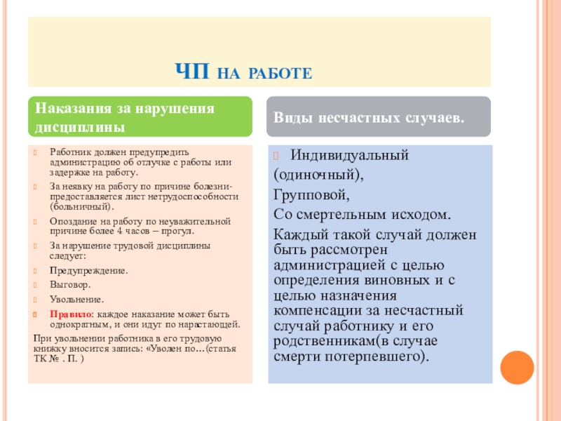Работник должен предупредить администрацию об отлучке с работы или задержке на работу.