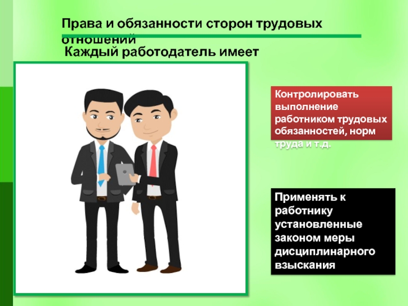 Применять к работнику установленные законом меры дисциплинарного взыскания