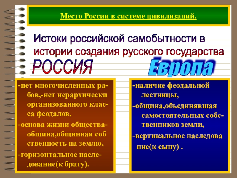 -нет многочисленных ра-бов,-нет иерархически организованного клас-са феодалов,