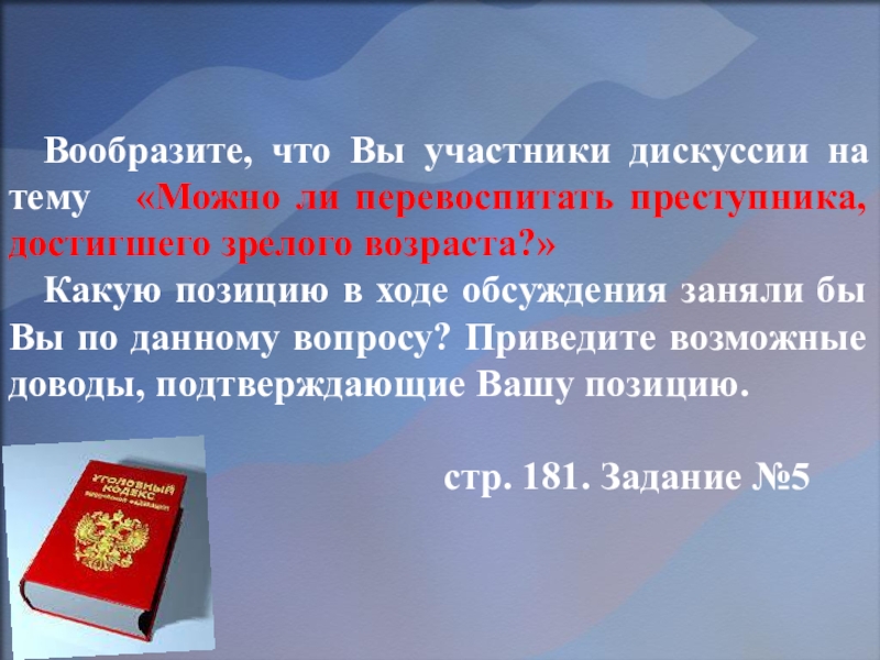 «Можно ли перевоспитать преступника, достигшего зрелого возраста?»