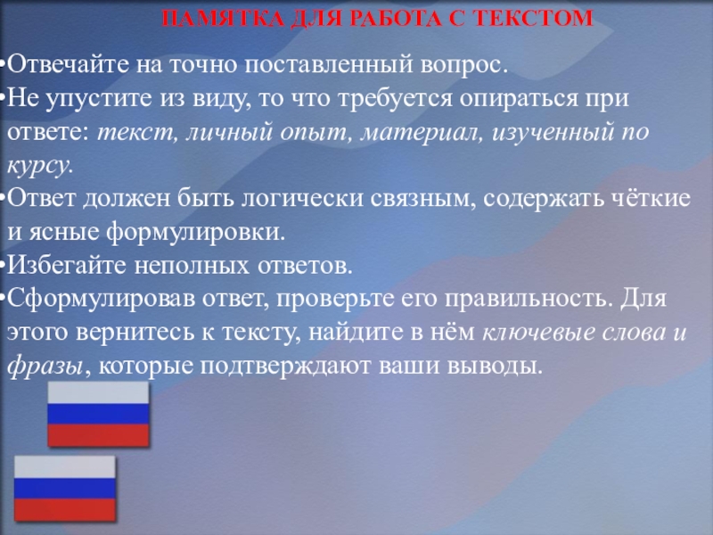 ПАМЯТКА ДЛЯ РАБОТА С ТЕКСТОМ