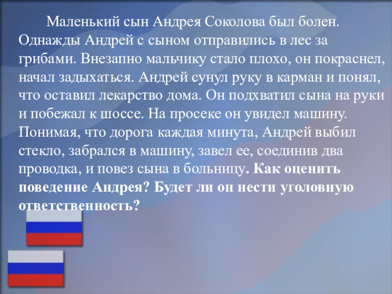 Слайд 14 Маленький сын Андрея Соколова был болен.