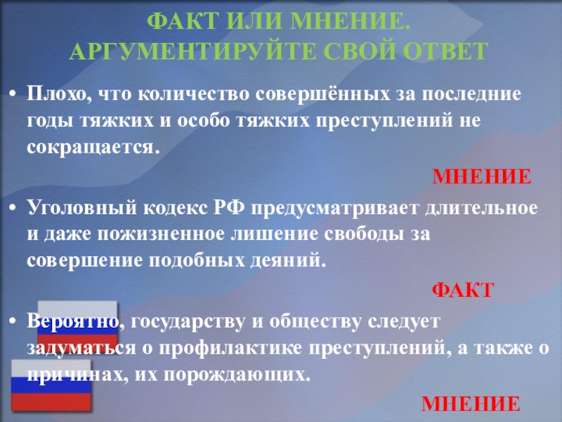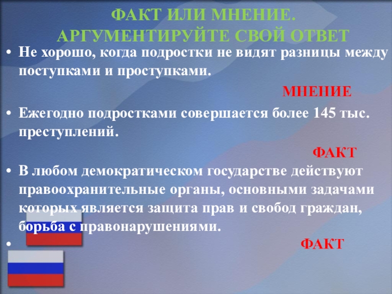 Слайд 22ФАКТ ИЛИ МНЕНИЕ.
