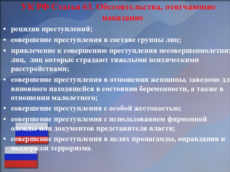 Слайд 17УК РФ Статья 63. Обстоятельства, отягчающие наказание