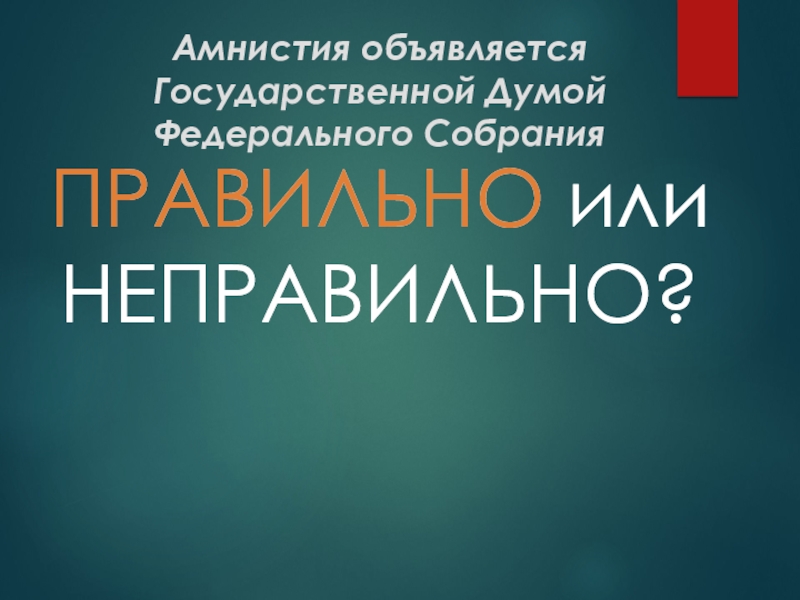 Слайд 32Амнистия объявляется Государственной Думой Федерального Собрания
