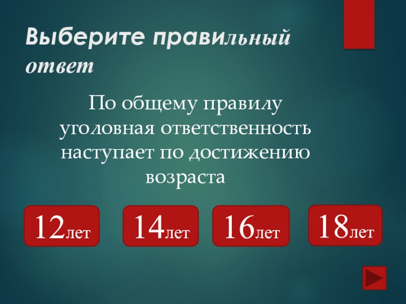 Слайд 40По общему правилу уголовная ответственность наступает по достижению возраста