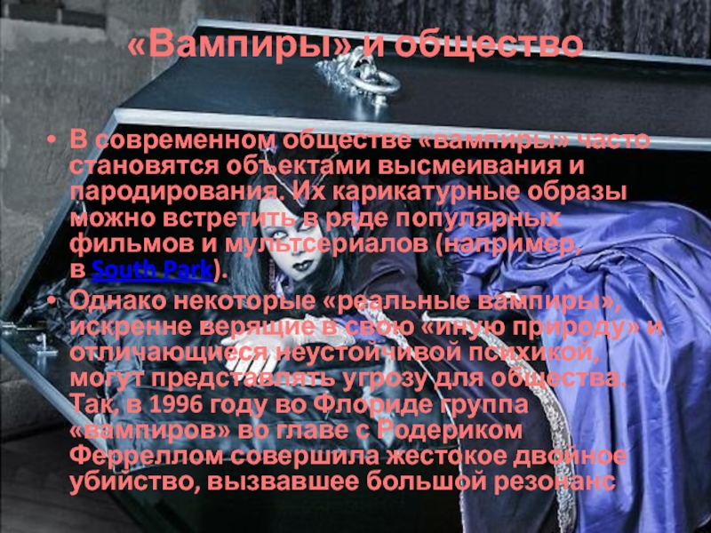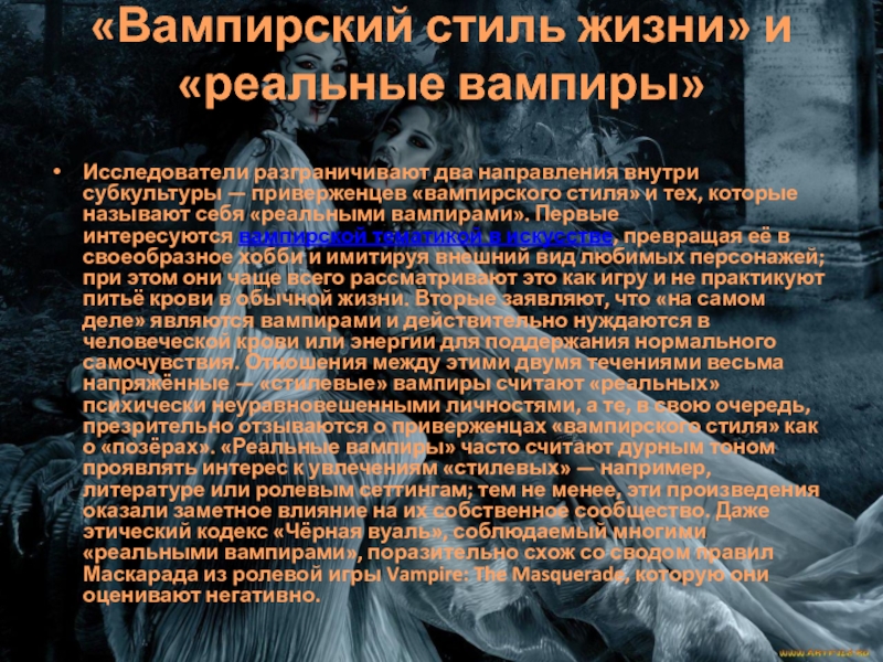 Слайд 4«Вампирский стиль жизни» и «реальные вампиры»