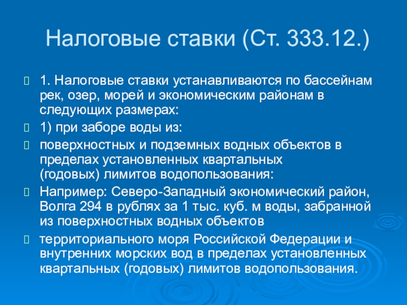 1. Налоговые ставки устанавливаются по бассейнам рек, озер,