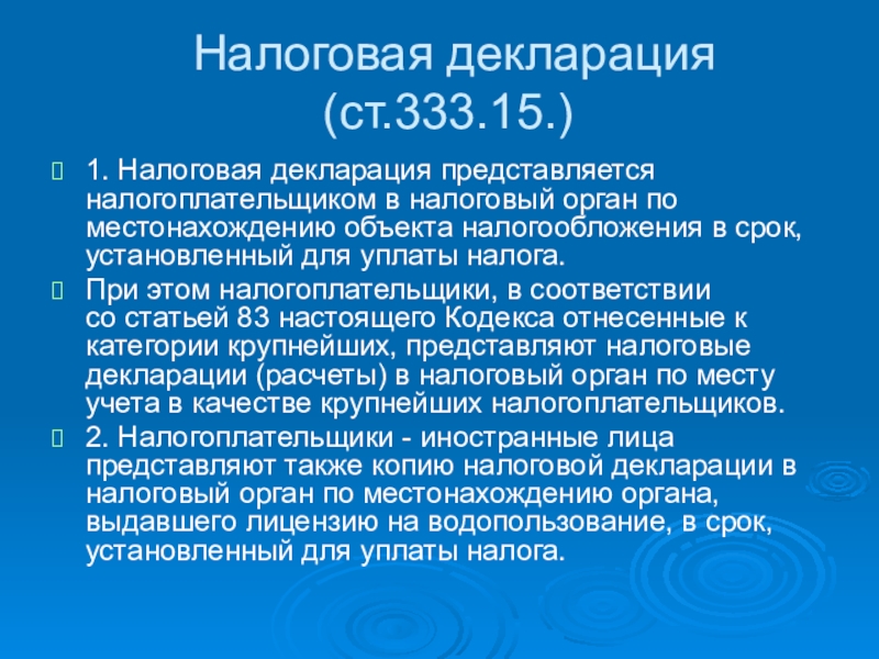 Слайд 13 Налоговая декларация (ст.333.15.)