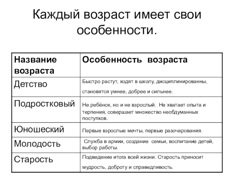 Слайд 6 Возраст человека – это ступень в развитии и росте