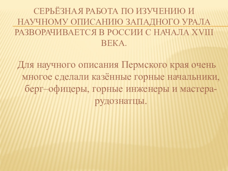 Слайд 3Серьёзная работа по изучению и научному описанию Западного Урала разворачивается в