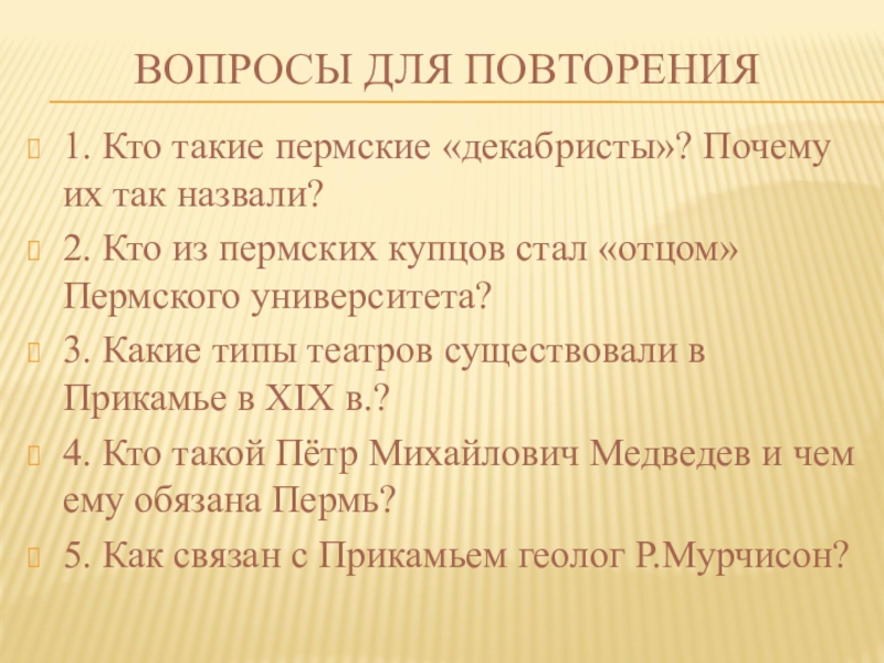 5. Как связан с Прикамьем геолог Р.Мурчисон?
