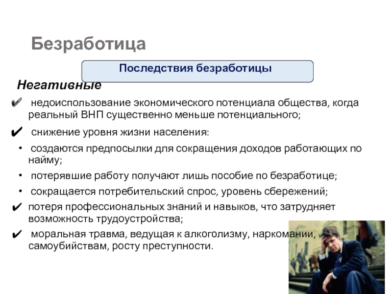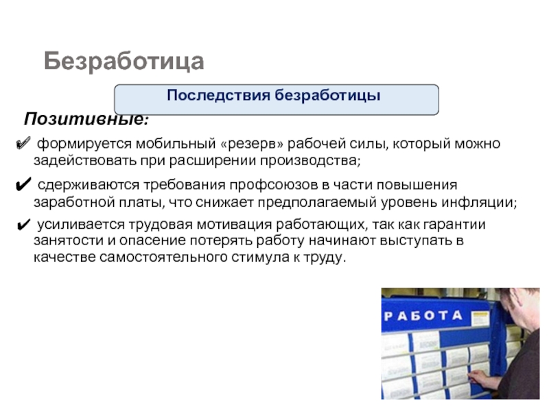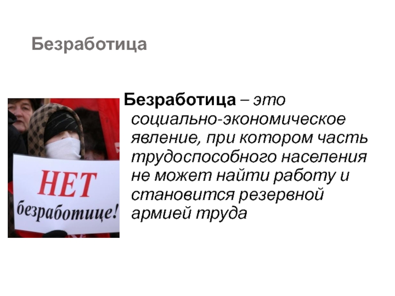 Сокращение и спад производства, падение спроса на товары ведут к потере работы и невозможности найти работу по любой специальности.