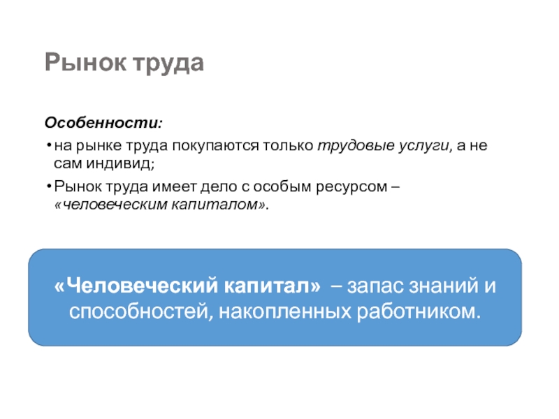 «Человеческий капитал» – запас знаний и способностей, накопленных работником.