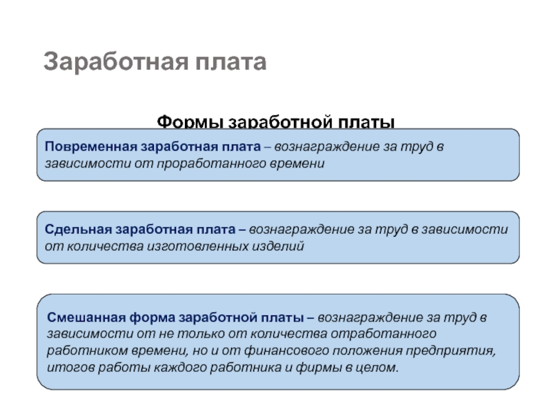 Смешанная форма заработной платы – вознаграждение за труд в зависимости от не только от количества отработанного работником времени, но и от финансового положения предприятия, итогов работы каждого работника и фирмы в целом.