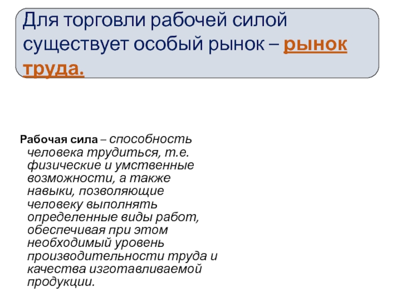 Для торговли рабочей силой существует особый рынок – рынок труда.