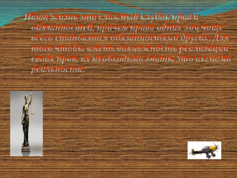 Слайд 2Наша жизнь это сложный клубок прав и обязанностей, причем права одних