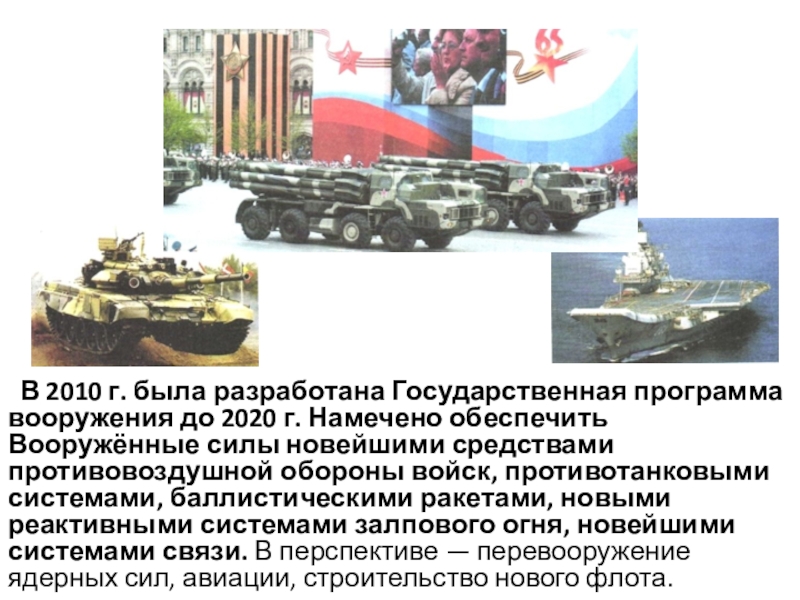Слайд 19 В 2010 г. была разработана Государственная программа вооружения до 2020