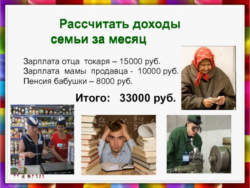 Рассчитать доходы семьи за месяц