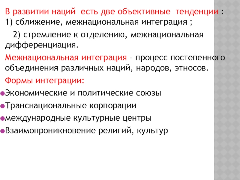 Слайд 8В развитии наций есть две объективные тенденции : 1) сближение, межнациональная