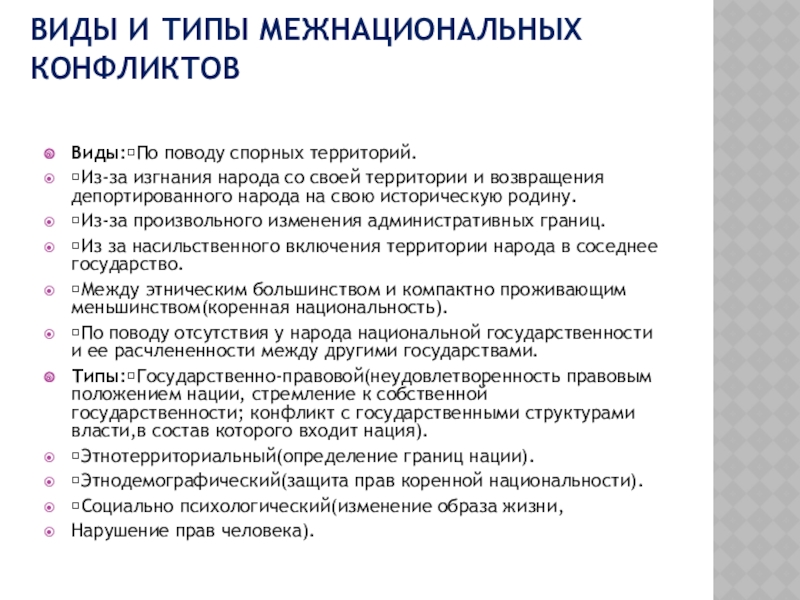 ВИДЫ И ТИПЫ МЕЖНАЦИОНАЛЬНЫХ КОНФЛИКТОВ