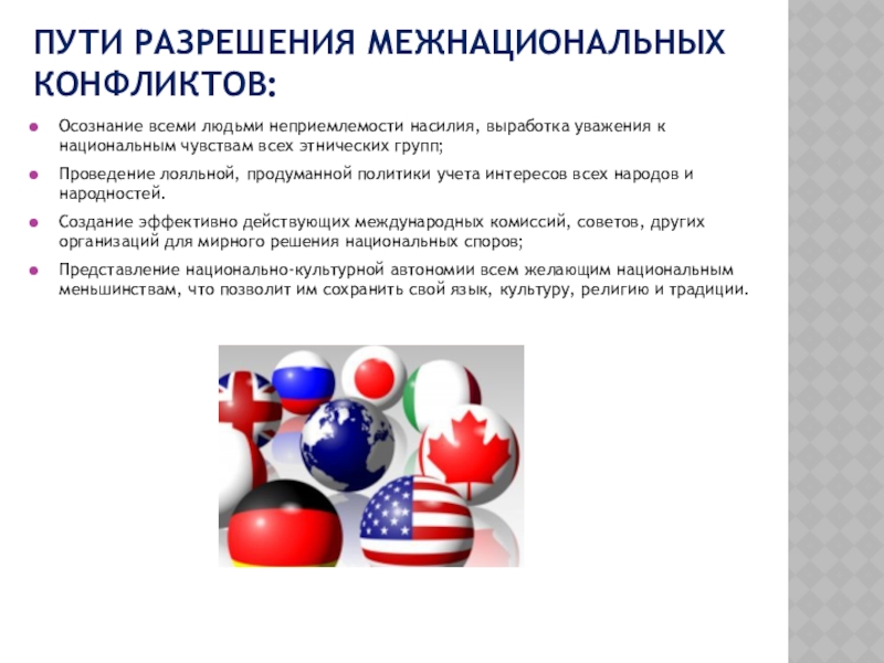 Слайд 20ПУТИ РАЗРЕШЕНИЯ МЕЖНАЦИОНАЛЬНЫХ КОНФЛИКТОВ: