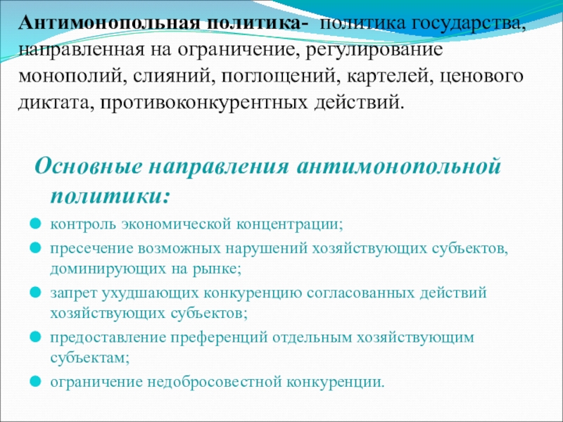 запрет ухудшающих конкуренцию согласованных действий хозяйствующих субъектов;
