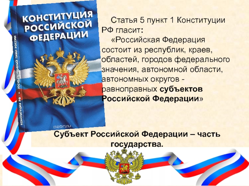 Субъект Российской Федерации – часть государства.