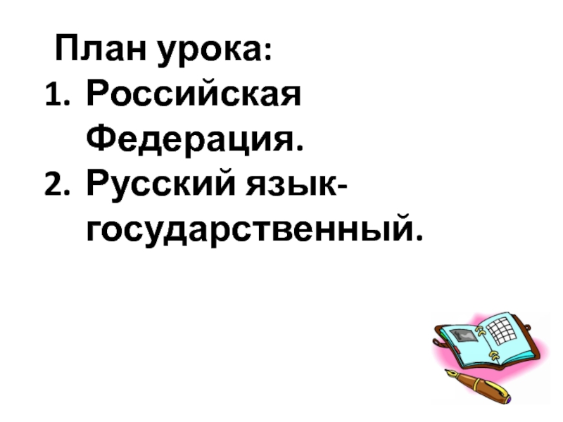 План урока:Российская Федерация.Русский язык- государственный.