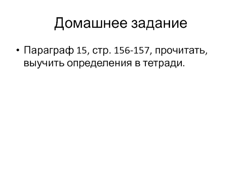 Домашнее заданиеПараграф 15, стр. 156-157, прочитать, выучить определения в тетради.