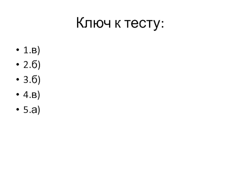 Ключ к тесту:1.в)2.б)3.б)4.в)5.а)