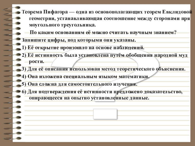 6) Для подтверждения её истинности предложено доказательство, опирающееся на опытно установленные данные.