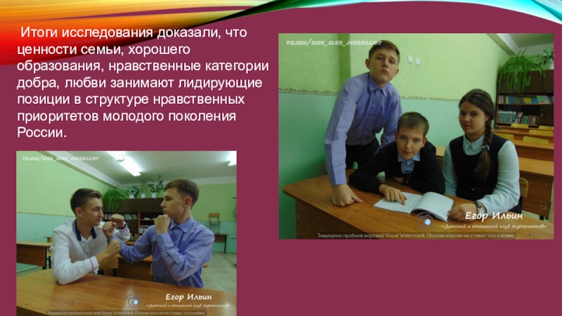 Слайд 16 Итоги исследования доказали, что ценности семьи, хорошего образования, нравственные категории