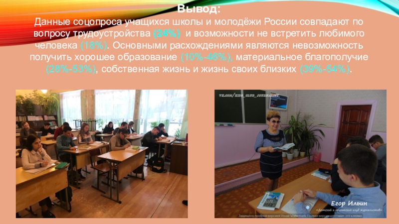 Данные соцопроса учащихся школы и молодёжи России совпадают по вопросу трудоустройства