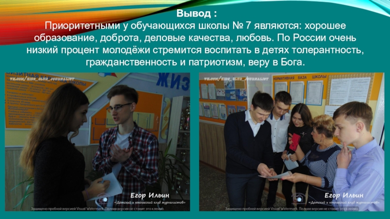 Приоритетными у обучающихся школы № 7 являются: хорошее образование,