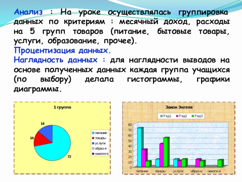 Слайд 14Анализ : На уроке осуществлялась группировка данных по критериям : месячный