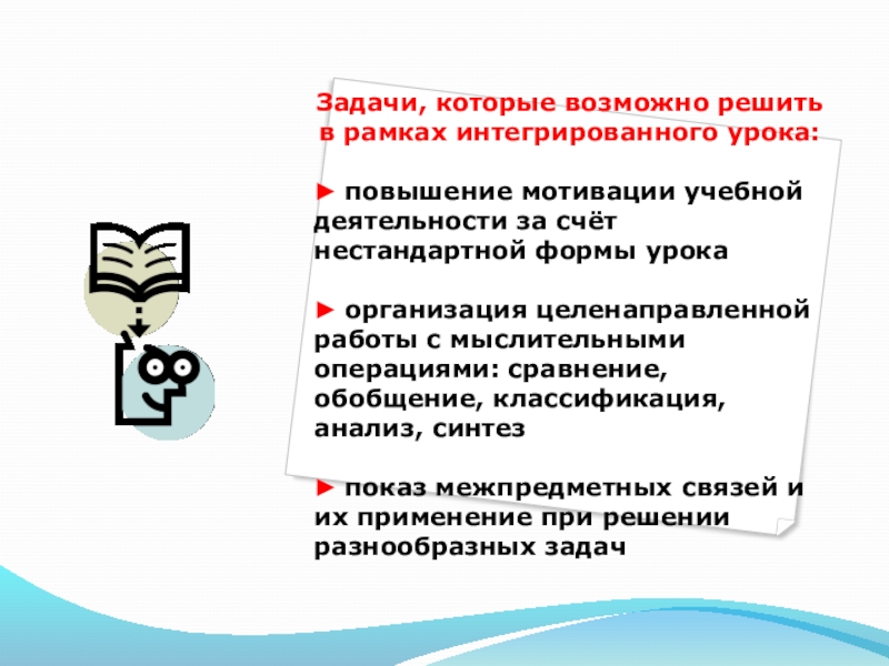 Слайд 7Задачи, которые возможно решить в рамках интегрированного урока: