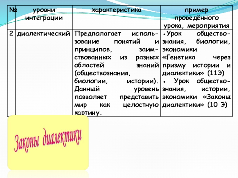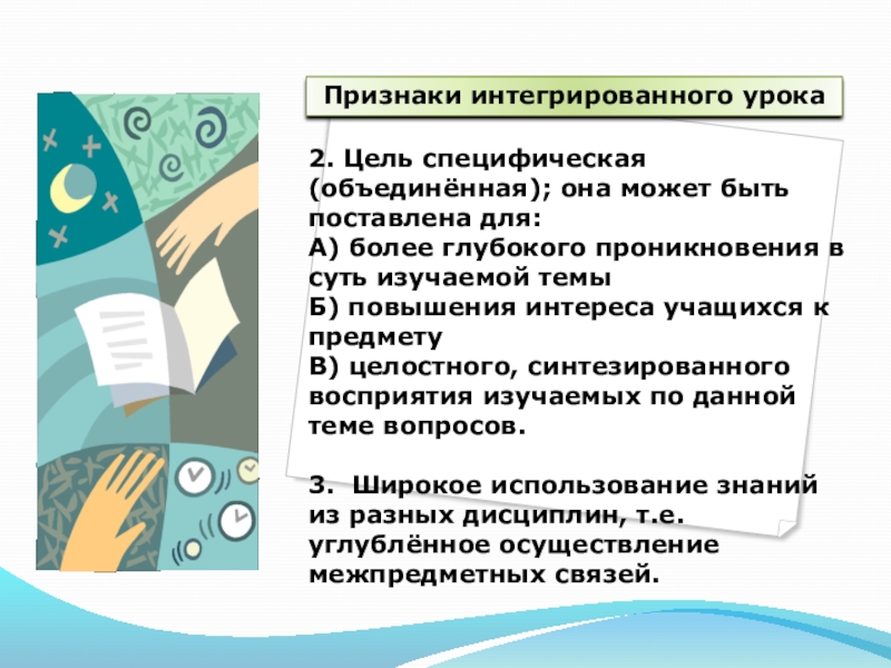 Интеграция создает возможность для формирования у учащихся целостной картины взаимосвязанного и взаимозависимого мира, общего восприятия различных сторон жизни.