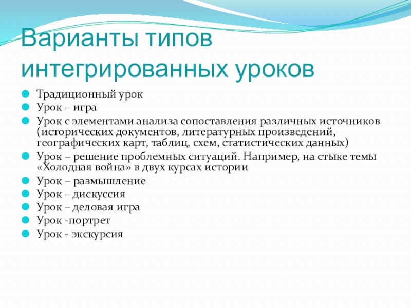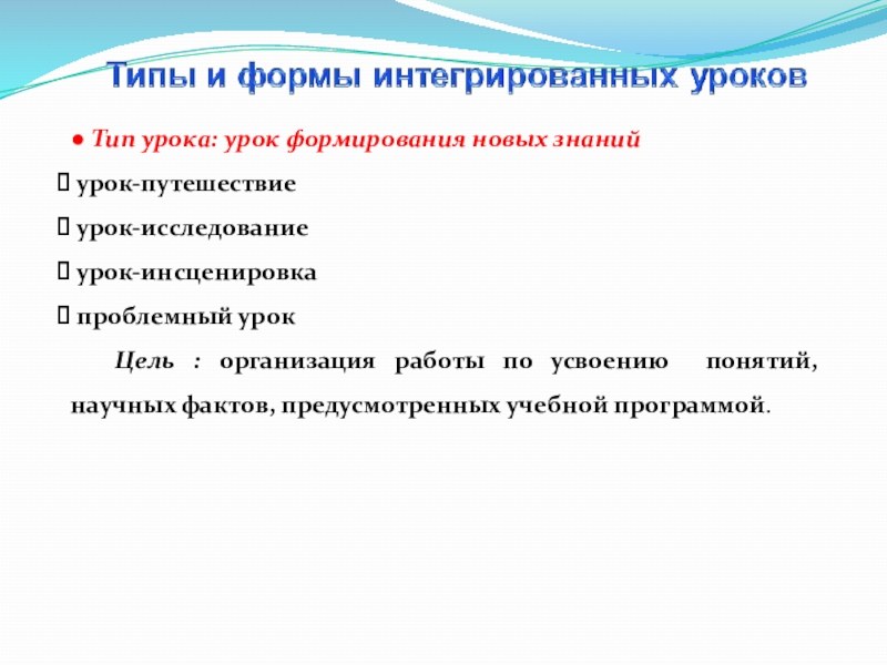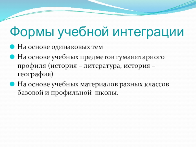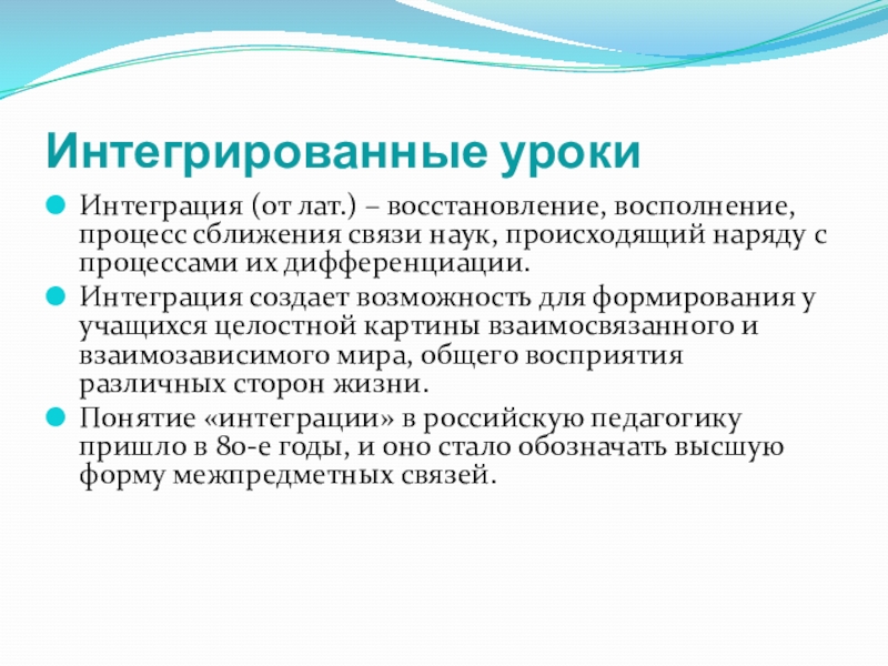 Понятие «интеграции» в российскую педагогику пришло в 80-е годы, и оно стало обозначать высшую форму межпредметных связей.